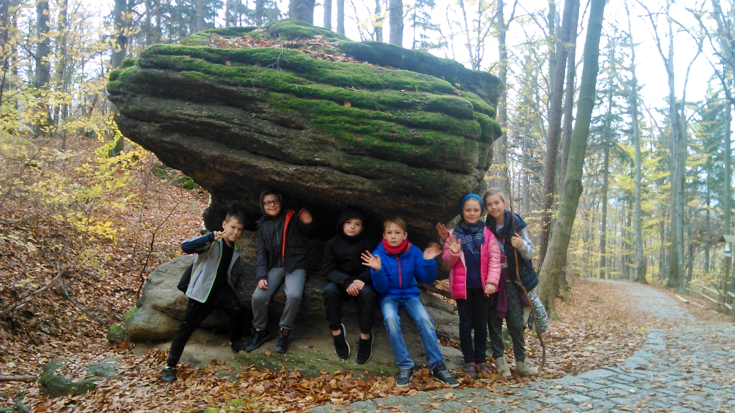 Brak sali gimnastycznej nie jest aż tak straszny, gdy za oknem piękna, złota jesień. Wykorzystujemy więc naturalne warunki do pracy nad zdrowiem i kondycją fizyczną. Połączenie klas i dwóch godzin wychowania fizycznego dają możliwości na takie piesze, górskie wycieczki.