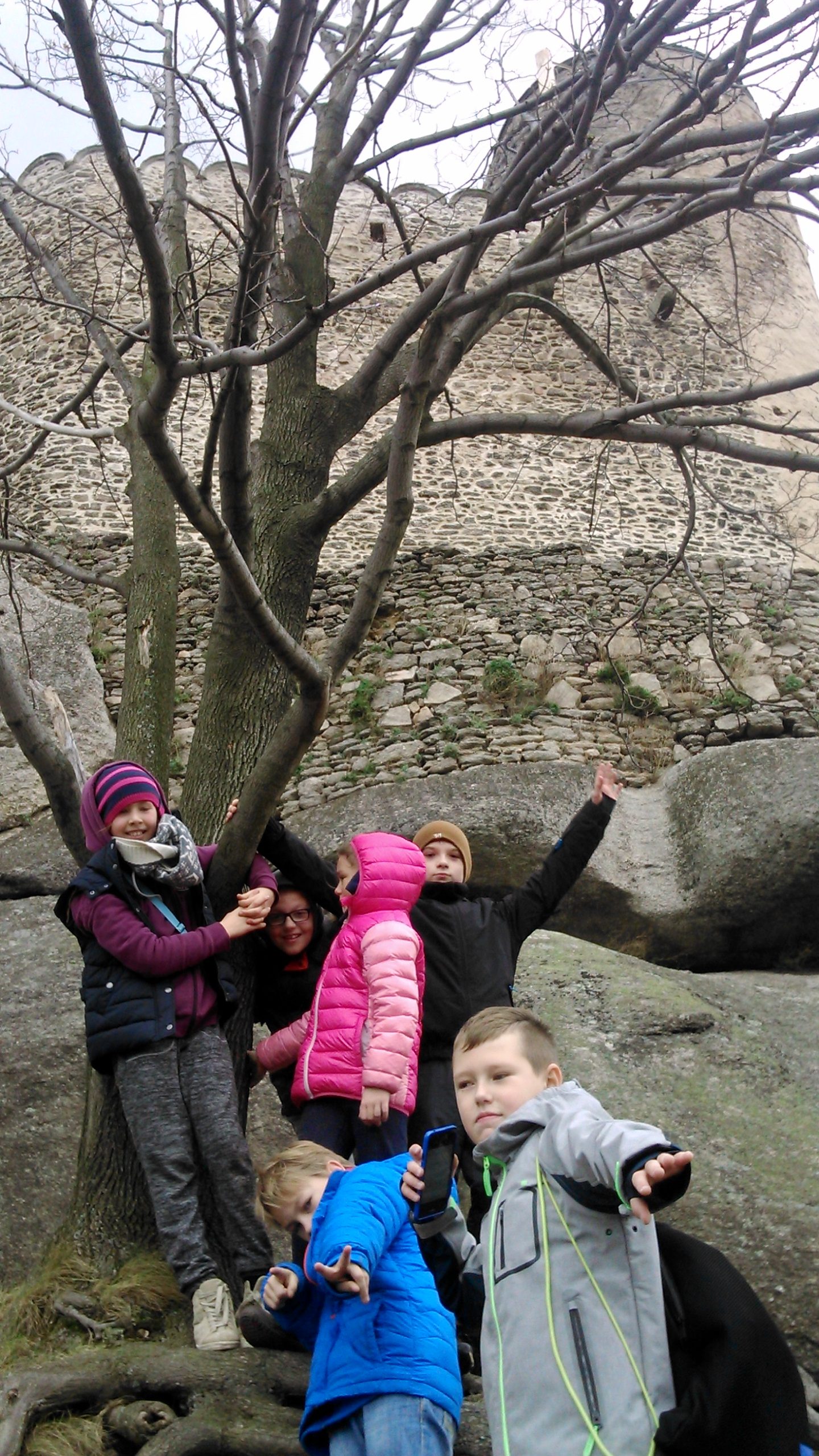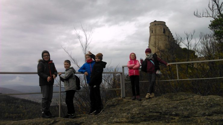 Niedawno na podbój zamku ruszyła IV i V klasa – ile te dzieciaki mają energii i zapału! To zgrana paczka, dobrze czują się w swoim towarzystwie. Całą drogę wspólnie śpiewaliśmy piosenki. Na rozwidleniu nasza drużyna jednogłośnie zdecydowała się na wycieczkę trudniejszym, ale ciekawszym, czarnym szlakiem. Bardzo odważne i ciekawe świata te nasze dzieci. Choć znajomość mapy jest jeszcze niewielka, to wiedza o przyrodzie stoi na dobrym poziomie. Najważniejsze, że dzieciom bardzo się podobało. A jak bardzo – widać na zdjęciach.